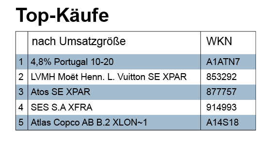 Eine Vermögensverwaltung aus dem Rhein-Main-Gebiet hat in der Berichtswoche mehrfach Aktien des französischen IT-Dienstleisters Atos im Gesamtwert von 440.000 Euro ins Depot genommen. Das reichte dann in der Summe für den Bronze-Rang in unserem Ranking der Top-Käufe gemäß Umsatzgröße. Atos S.A. gilt nach der 2011 erfolgten Übernahme der Siemens IT Solutions and Services GmbH mit rund 100.000 Mitarbeitern in 72 Ländern als einer der weltweit größten Anbieter in diesem Technologiesegment. Hauptgeschäftsfelder sind: Zahlungstransaktionen, Beratungs– und Technologie-Services, Systemintegration, Outsourcing-Dienstleistungen, sowie Cloud-, Big-Data– und Sicherheitslösungen. Atos konnte 2015 seinen Pro-Forma-Umsatz um 18 Prozent auf 11 Milliarden Euro steigern, ebenso die Umsatzrendite von 7,1% auf 8,3%. Die am 24. 6. auszubezahlende Dividende für das Jahr 2015 wird 1,10 Euro pro Aktie betragen, was gegenüber den 0,80 Euro im Vorjahr eine Erhöhung um 38 Prozent bedeutet. Trotz dieser Steigerung ist die Aktie bei einer Dividendenrendite von rund 1,4% kein Dividendentitel. Beeindruckender der Kursanstieg – unter anderem nach Bekanntgabe der Unternehmenszahlen und weiterer guter Aussichten im Februar – von 63 Euro auf 78 Euro aktuell. Ob aber hier noch weiteres Potenzial besteht? Die Aktie gilt gegenwärtig als nur leicht unterbewertet.