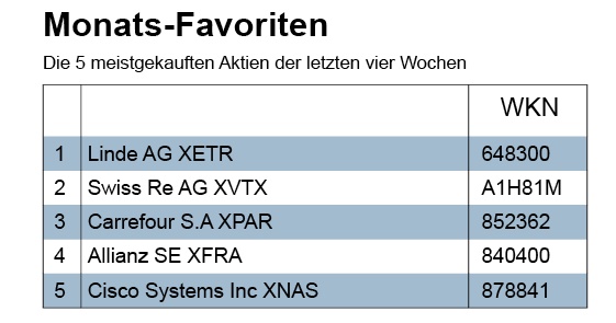 Mit Linde hat sich schon wieder ein neuer Wert an die Monats-Favoritenspitze gesetzt. Der Gasehersteller steckt nach einem gescheiterten Übernahmeversuch in Schwierigkeiten. In der Situation haben einige Häuser gekauft. Ganz offenbar gab es dafür Gründe: Erstens erachten gerade Vermögensverwalter die ‚Kauferitis‘ vieler Unternehmenslenker (auch im Fall Bayer ist das so) als ungut für die Gesamt-Entwicklung. Die Federn, die sich die Manager (und Aufsichtsräte) mit Fusionen und Zukäufen ans Revier heften können, mögen deren Image gut tun. Die nackten Zahlen, sprich die Rendite, verbessert sich in vielen Fällen durch die Deals jedoch nicht. Das der Zukauf im Fall Linde nicht geklappt hat, ist vielen Depotmanagern also ganz recht gewesen. Zweitens: Die Märkte überbewerten gern solche schlechten Nachrichten, vor allem, wenn sie von persönlichen Querelen und Personalrochaden begleitet sind. Im Fall von Linde gibt es für ein Overshooting, dass heißt für eine jetzt anstehende Korrektur nach oben, gute Gründe. Drittens: Die Substanz von Linde, auch in Zukunft sicher Dividenden abzuliefern, wird von (fast) niemandem in Frage gestellt. Insofern ist ein Engagement langfristig wenig riskant.