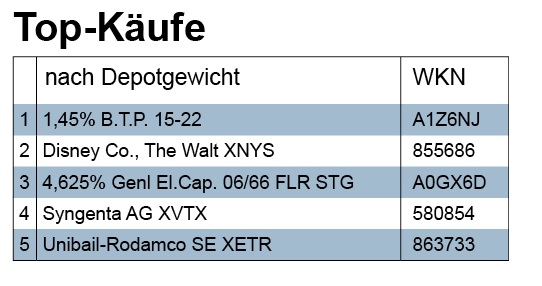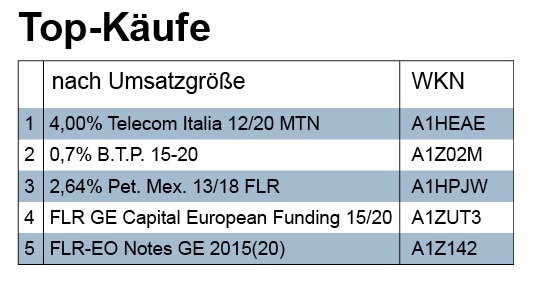Die Käufe der Woche beziehen sich vornehmlich auf Anleihen, weswegen diese auch in den Top-Listen bevorzugt zu finden sind.