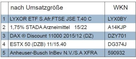 Das Verkaufsvolumen war in der Berichtswoche mit 1,2 Mio. Euro ungewöhnlich gering. Die meisten Transaktionen zählten wir bei Fonds.