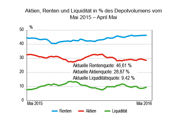 Vom Handel gehen bei diesen schwachen Umsatzvolumina kaum Impulse auf die Verteilung der Assetklassen aus. Die leichten Verschiebungen, etwa die wieder gefallene Aktienquote, sind größtenteils auf Kursverluste an den überaus launischen Märkten zurückzuführen. Die Folgen spürt man auch sogleich auf der Performance-Seite: Am Ende der Berichtswoche war die durchschnittliche YTD-Performance aller Risikoklassen, auch der konservativen, wieder tiefer im Minusbereich.