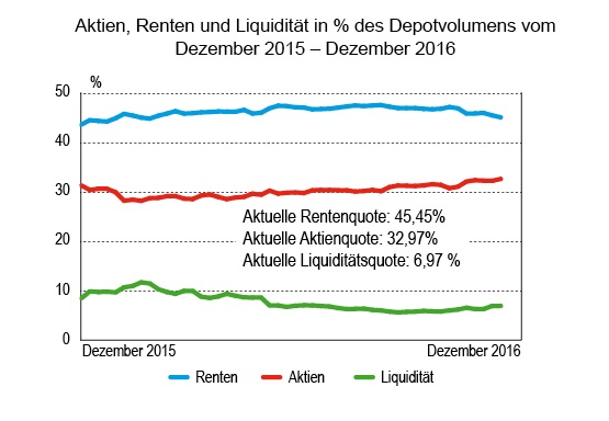 Depotquoten: Aktienquoten wertbedingt ansteigend.