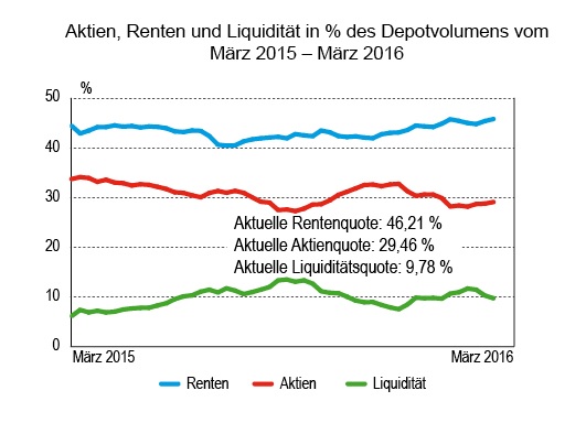 Das Transaktionsvolumen an Anleihen, der dominanten Anlageklasse der vergangenen Wochen, macht heuer nur 3,6 Millionen Euro aus. Mit einem durchschnittlichen Depotanteil von über 46 Prozent ist aber auch so etwas wie eine Sättigungsgrenze erreicht.