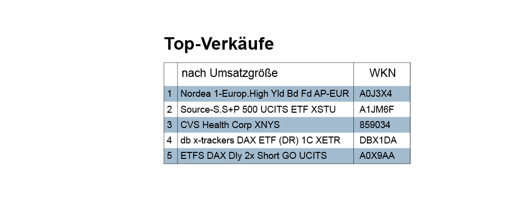 S + P 500; Dax; ShortDAX ® x2. Hier konnten die Investoren Gewinne verbuchen. Der auf dem Goldtreppchen der Top-Verkäufe gemäß Volumen stehende Hochzinsanleihen-Teil-Fonds von SICAV (A0J3X4) wird aktiv gemanagt. „Ziel dieses Teilfonds ist, das Kapital der Anleger zu erhalten und eine Rendite zu erzielen, die über der durchschnittlichen Rendite des europäischen Marktes für hochrentierende Anleihen liegt.“ Dieses Ziel wurde mit dem Investment nicht erreicht, denn das eingesetzte Kapital konnte nicht erhalten werden.