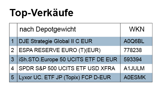 Verkauft wurden in der Karwoche größtenteils nur Fondsanteile für knapp über 3 Mio. Euro. Und ein strukturiertes Produkt, das zurückgezahlt wurde, trug mit weiteren 3 Mio. Euro ebenfalls zum Verkaufsumsatz bei. Der Beitrag zum Verkaufsvolumen von Aktien und Anleihen war hingegen verschwindend. In der zweiten Hälfte unserer Doppelwoche nach Ostern waren bei den Abgaben gleichfalls Fonds mit 5 Mio. Euro ganz vorne. Dabei schnitten Aktien mit 1,7 Mio. und Anleihen mit 1,24 Mio. Euro besser ab als noch in der Karwoche zuvor.