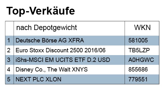Aus einer ganzen Reihe von Depots wurde auch die Deutsche Börse abgegeben. Die Verwalter haben (bei einem Kurs von mehr als 78 Euro) einen Gewinn realisiert, der sich aus dem Auf und Ab im Zuge der geplanten Fusion mit der Londoner LSE ergeben hat. Das Handelsblatt schreibt dazu mit Verweis auf einen Analysten: „Die NORDLB hat das Kursziel für Deutsche Börse im Zuge der geplanten Fusion mit der LSE von 75 auf 78 Euro angehoben und empfiehlt, das Aktientausch-Angebot anzunehmen. Mit dem Zusammenschluss der beiden Börsenbetreiber entstünde ein führender, globaler Marktinfrastruktur-Anbieter, schrieb Analyst Michael Seufert in einer Studie vom Dienstag. Auch wegen des nicht unerheblichen Synergiepotenzials wäre die Transaktion positiv. Einen möglichen Brexit sieht er unkritisch, da das Gemeinschaftsunternehmen mit Frankfurt weiterhin ein Standbein in der EU hätte.“