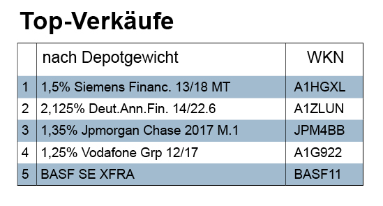 Der Verkaufsumsatz beschränkte sich ganz auf Aktien und Anleihen; auf der diesbezüglichen Liste standen keine Fonds und auch keine Derivate. Aktienverkäufe summierten sich auf 2,66 Mio. Euro, Anleihen steuerten knapp 0,7 Mio. Euro zum Verkaufsumsatz bei. Bei den Aktienverkäufen standen ganz oben (diesmal die ersten 10): Roche; Daimler; Merck; Nucor; Fresenius; Lyondellbasell; BASF; Commerzbank; WH Smith; Münchener Rück. Also immerhin ein halbes Dutzend Dax-Mitglieder. Und darunter ausgesprochene Analystenfavoriten, wie etwa Roche oder Fresenius.